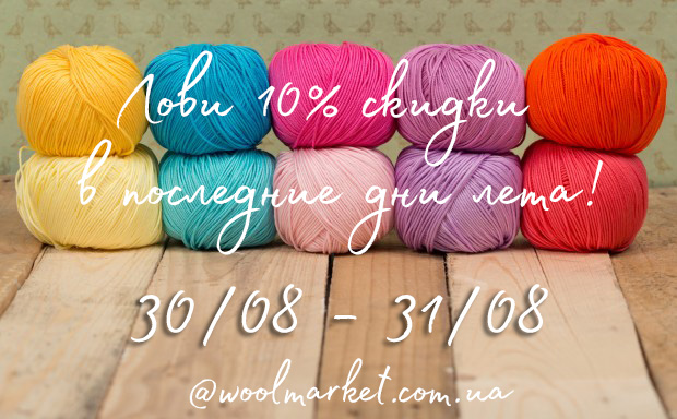 В последние дни лета - 30.08 и 31.08 действует скидка 10% на всю хлопоковую пряжу на нашем сайте!