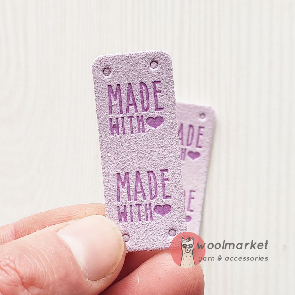 Бірка пришивна "Made with Love", пурпурний - для в'язаних Хенд Мейд речей.