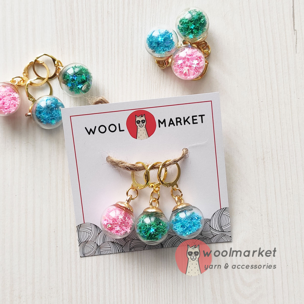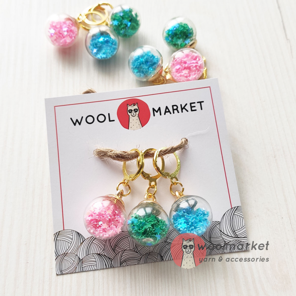Маркери для в'язання "Кульки з зірочками", 3 шт (бірюза, зелена бірюза, рожевий)