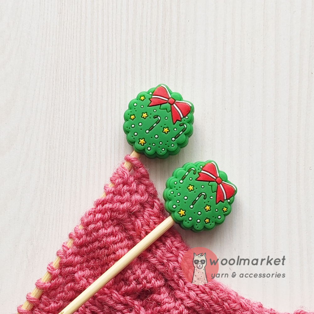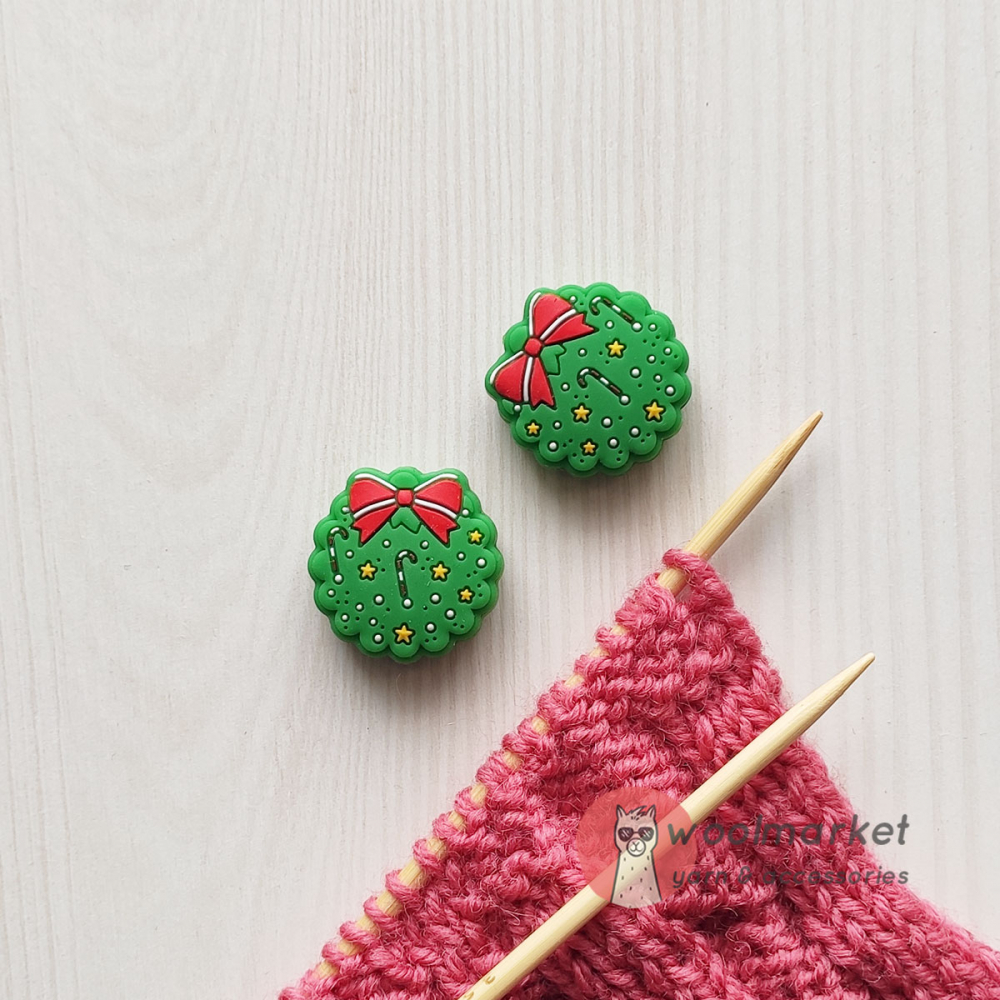 Силіконові стопери для спиць "Різдв'яний віночок". Новорічні, незвичні, яскраві, безпечні наконечники для спиць 2,5 - 6 мм., але і тонкі спиці ви можете "стопити" 2 в один стопер.
