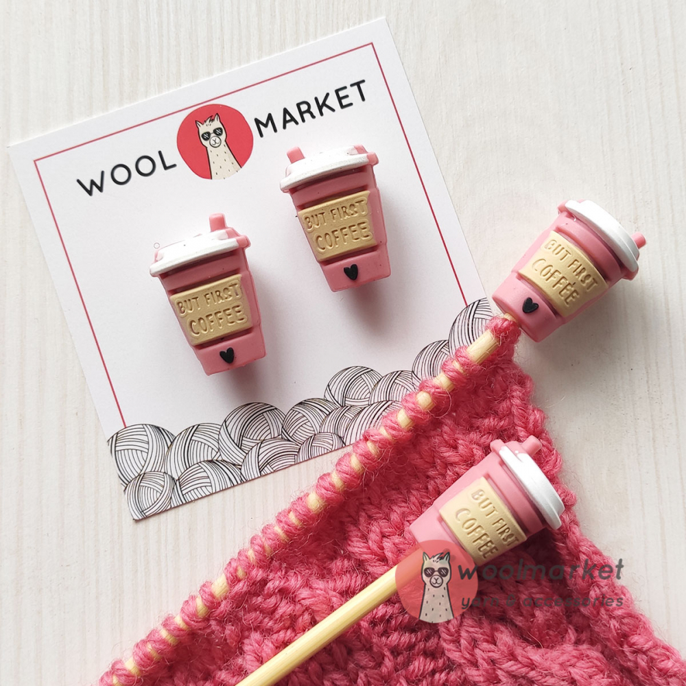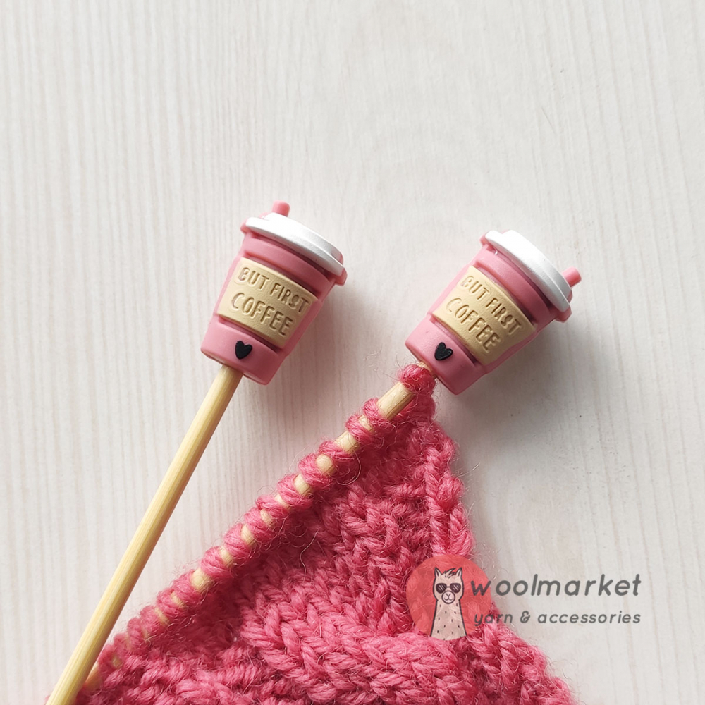 Дещо новеньке, тематичні силіконові стопери для спиць "But First Coffee". Незвичні і яскраві, безпечні наконечники підійдуть для спиць від 2 до 6 мм.