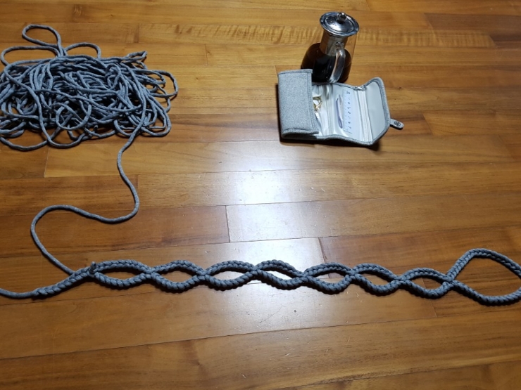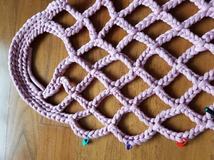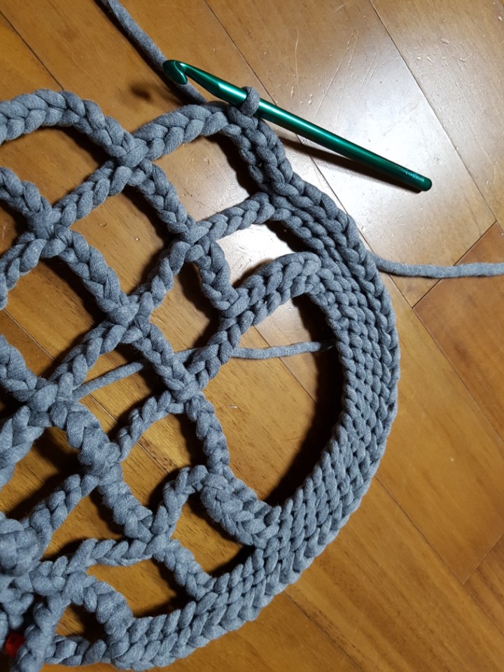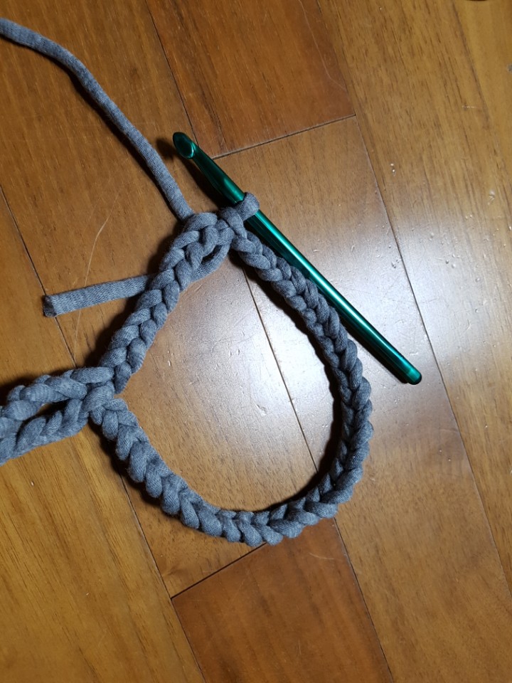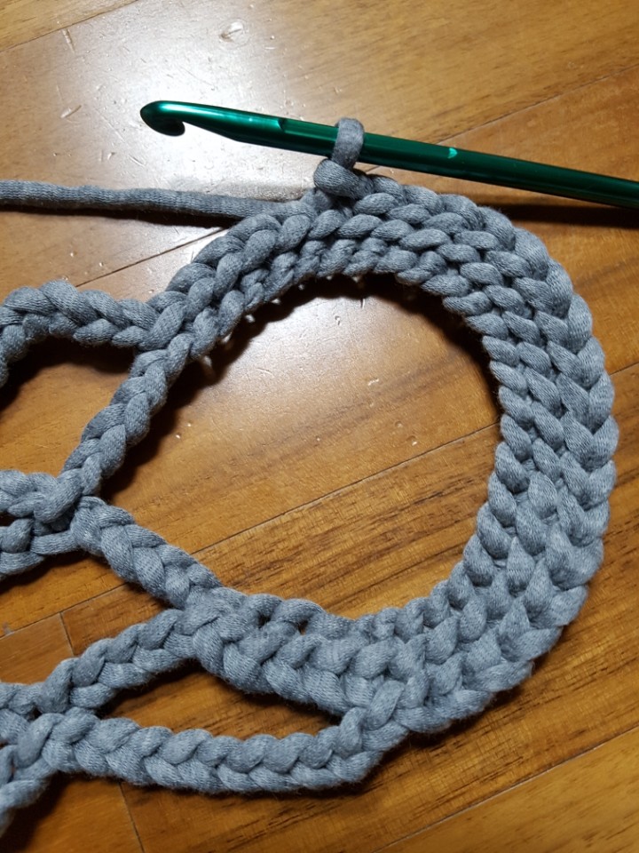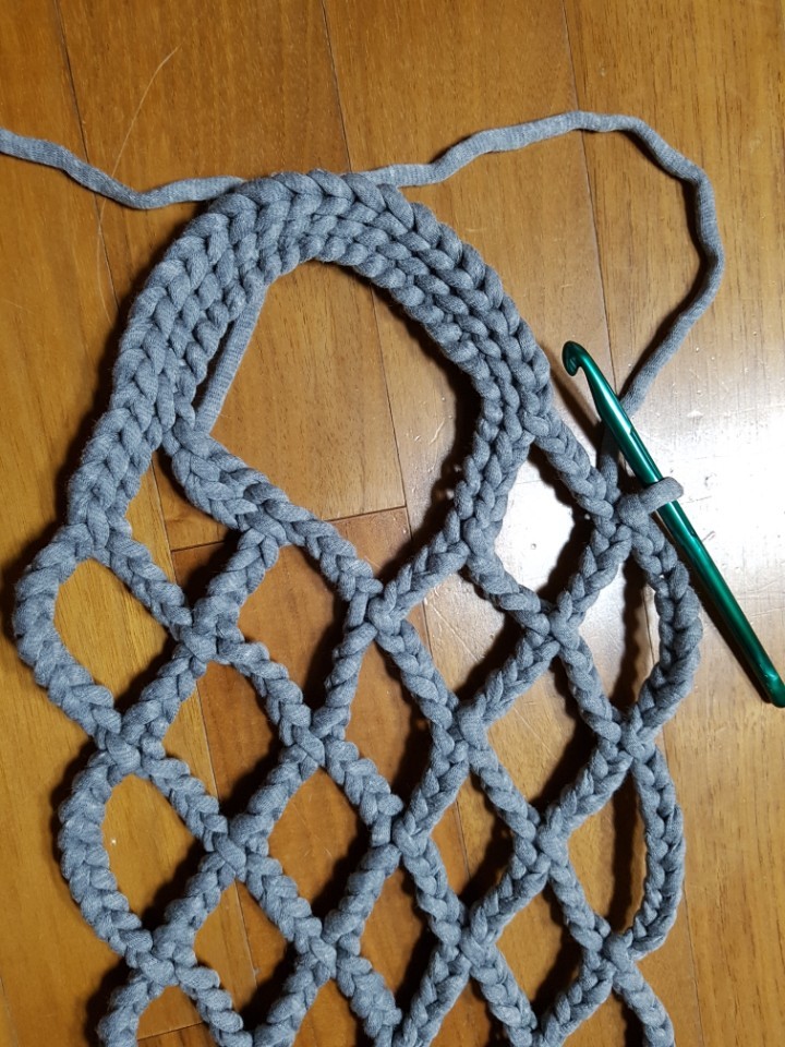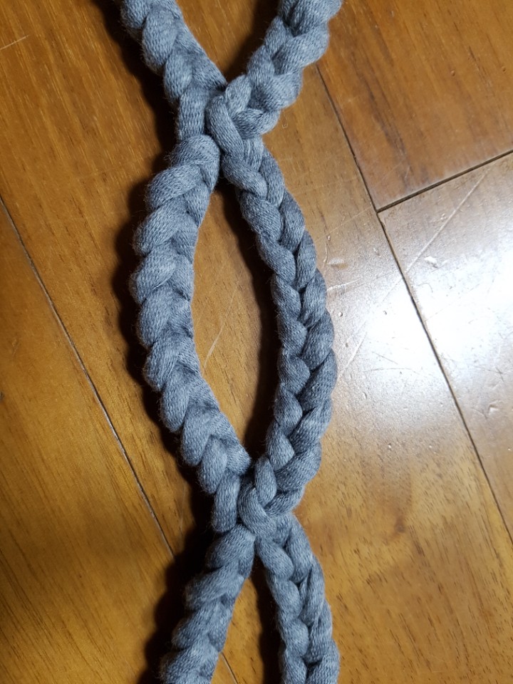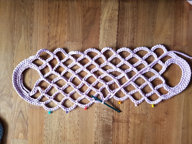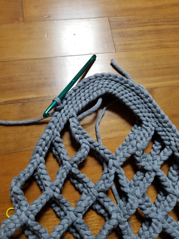 Оборвите нить, присоедините ее внизу с другой стороны сумки и соедините точно таким же образом.
