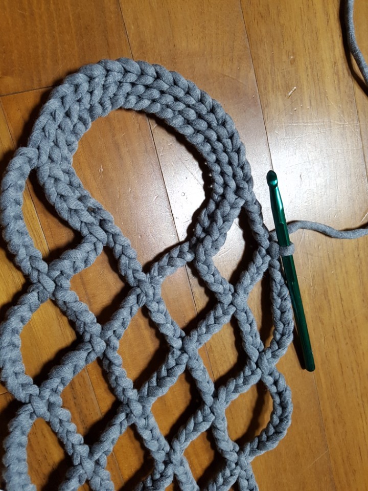 Обвяжите всю ручку столбиками, как в предыдущих шагах, но в этом ряду продолжите вязание полустолбиками до 5-й п. первой арки, как на фото. Всего в ряду должно получиться 25 полустолбиков.
