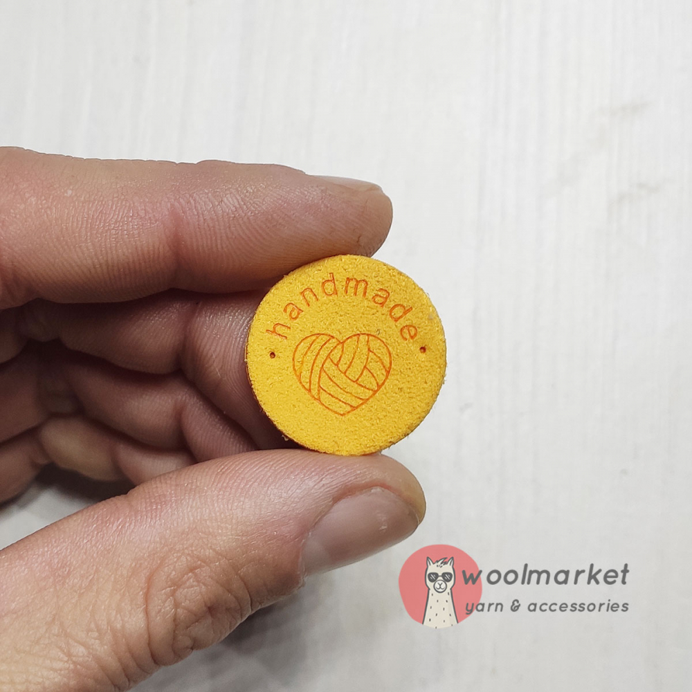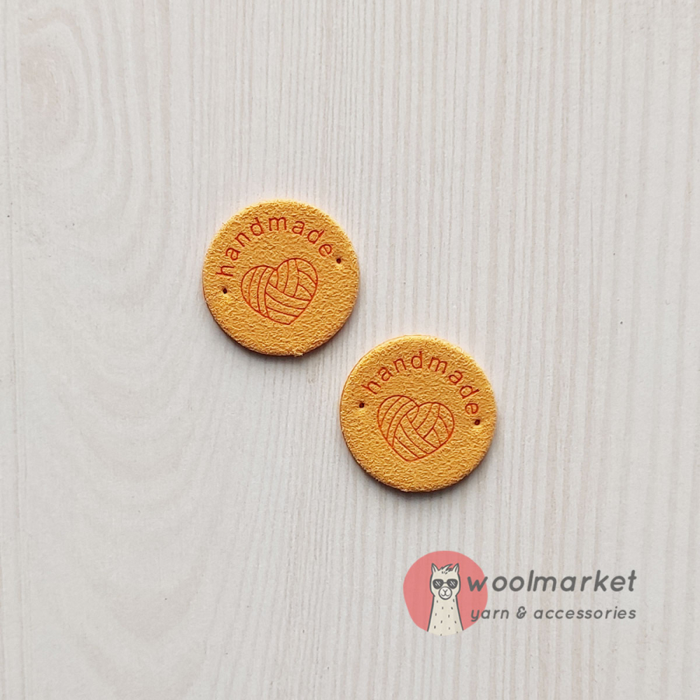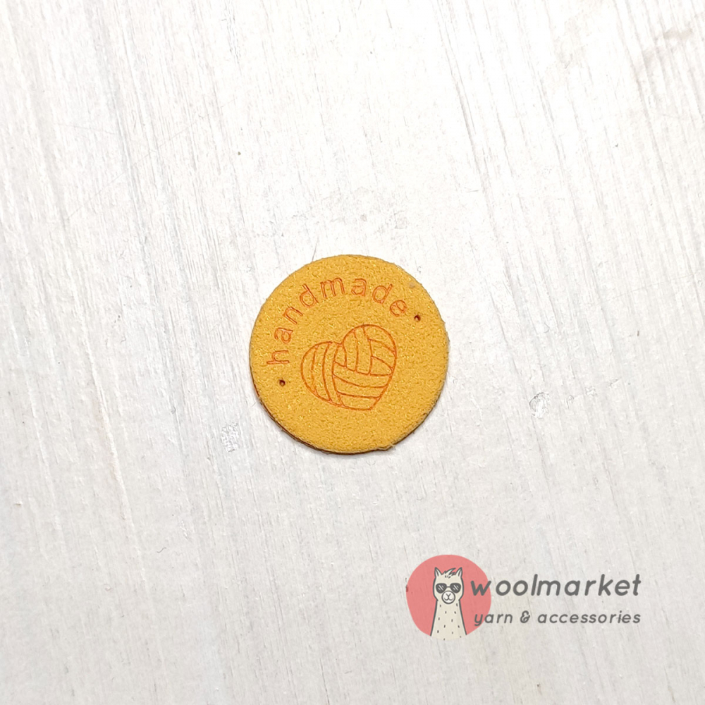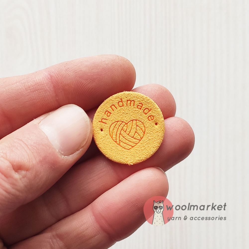 Бірка пришивна "Handmade", жовтий, кругла, 1шт