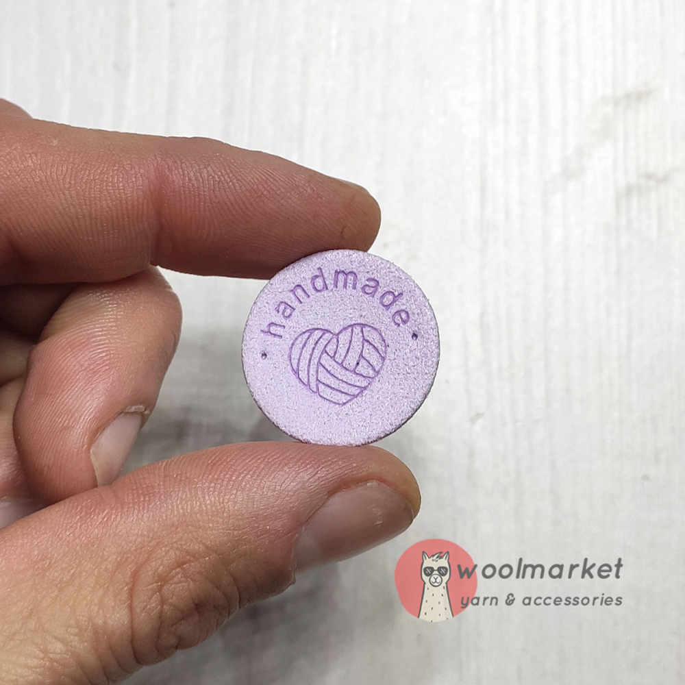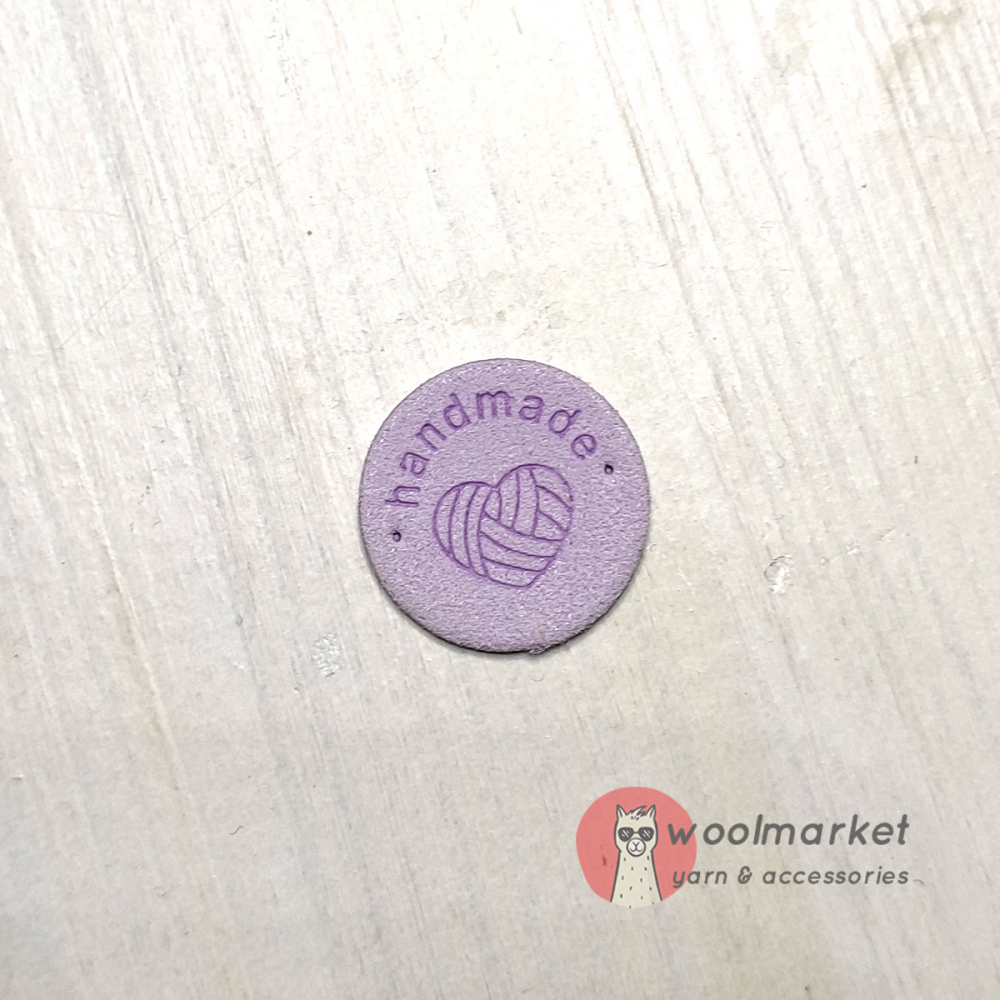 Бірка пришивна "Handmade", пурпурний, кругла, 1шт