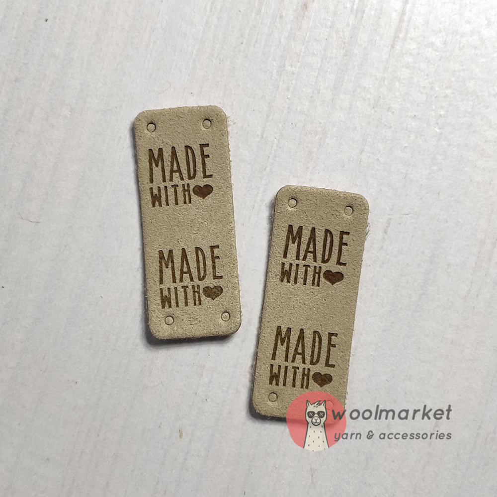 Бірка пришивна "Made with Love", лляний - для в'язаних Хенд Мейд речей.