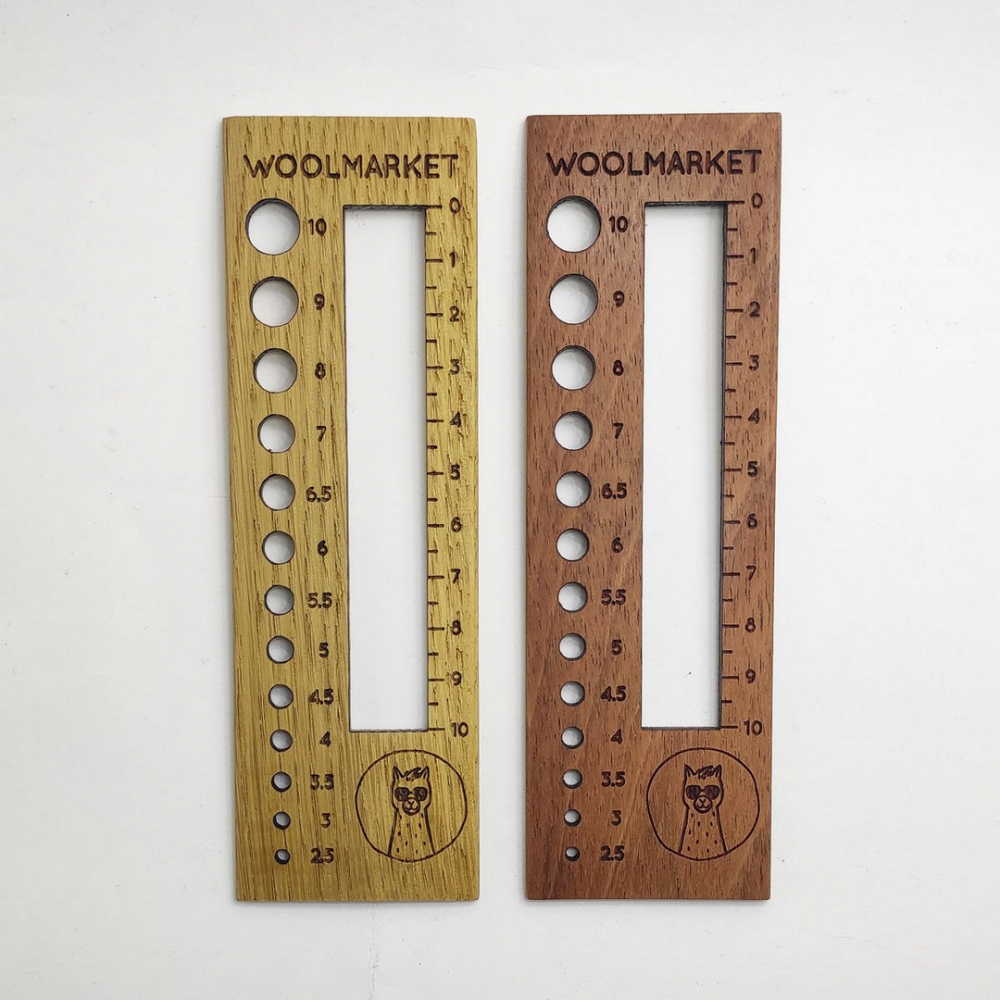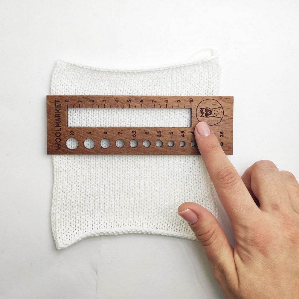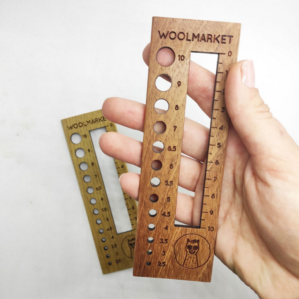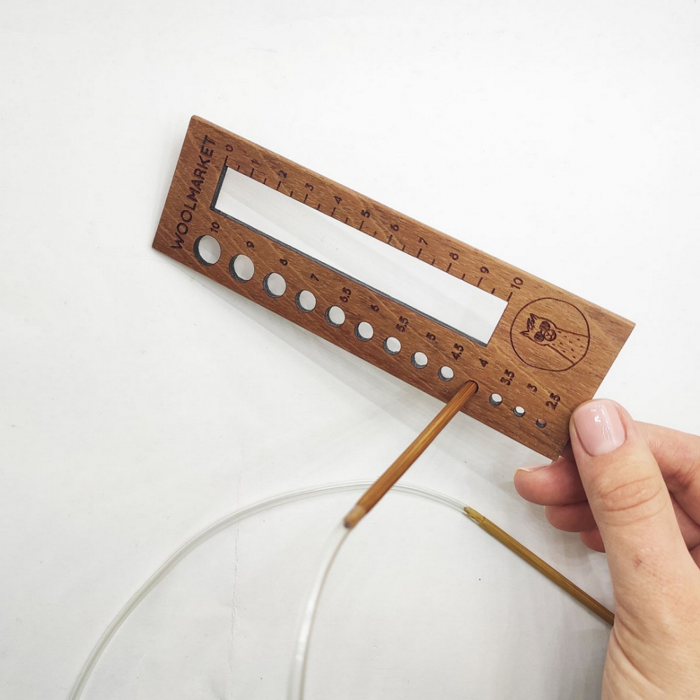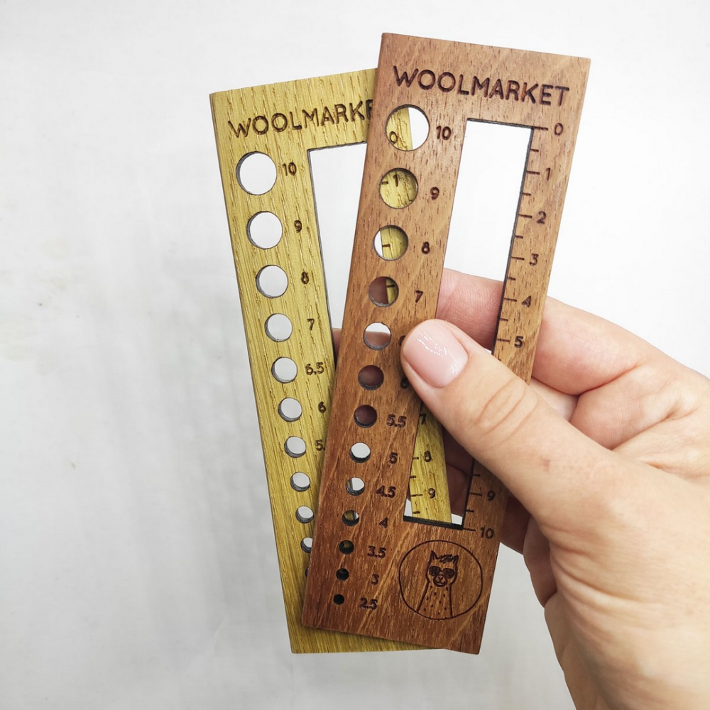 Лінійка калібратор для спиць - корисний інструмент в арсеналі майстрині. Взнати розмір спиць, на яких стерлось фабричне маркування, швидко підрахувати щільність в'язання - основні задачі лінійки.