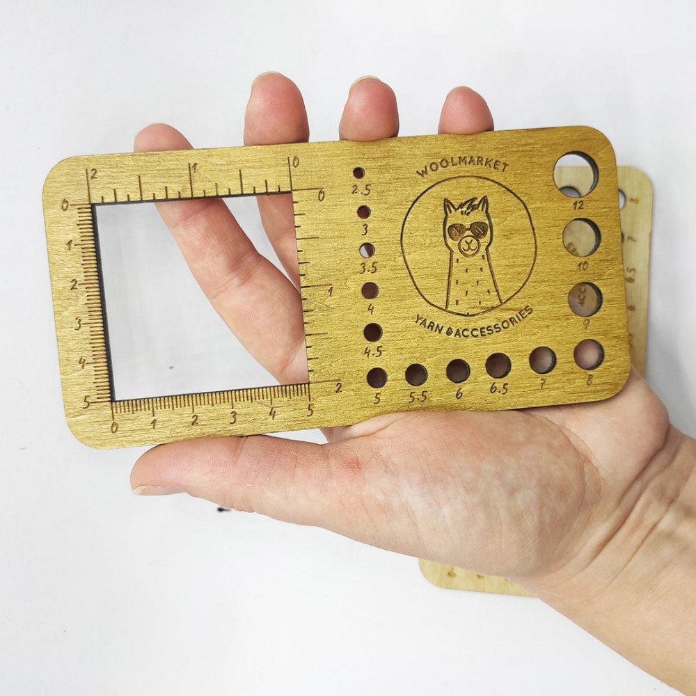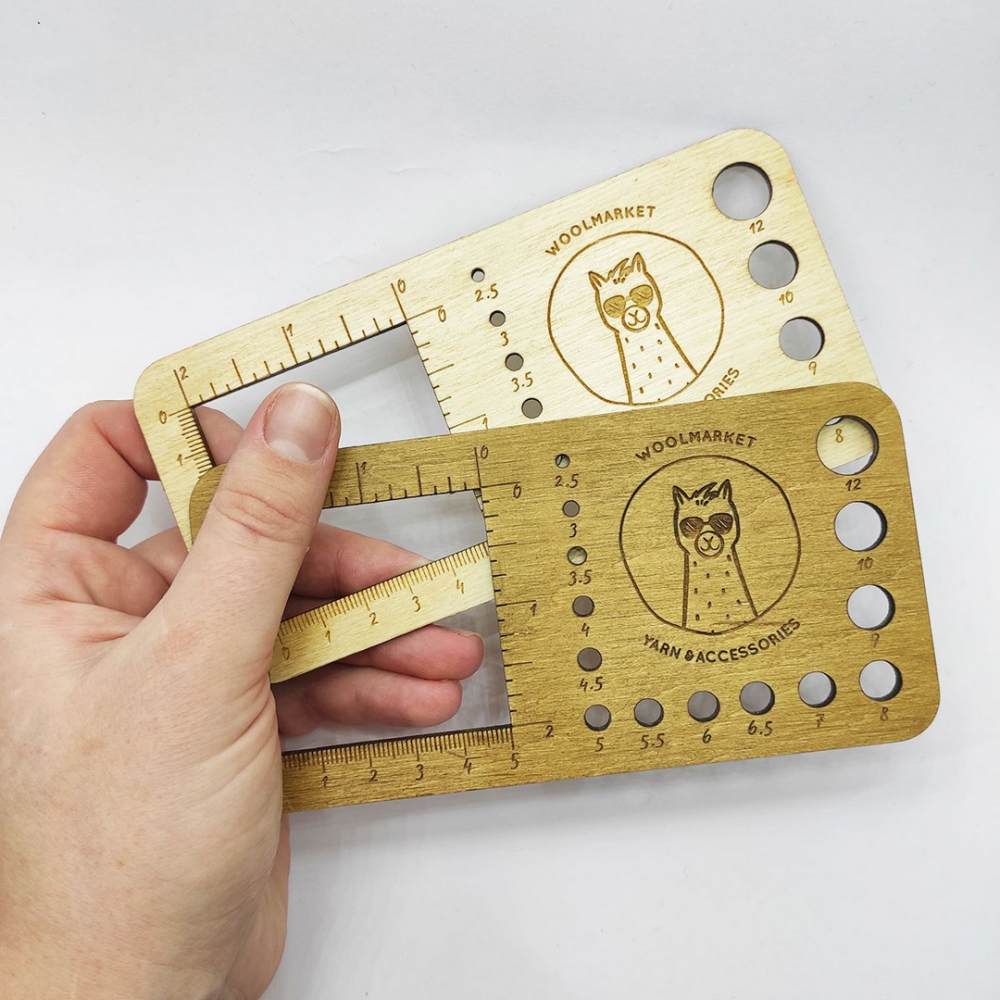 Калібровочна лінійка для в'язання - одна з розробок нашого магазину! Лінійка допоможе взнати розмір спиць і розрахувати щільність в'язання в в'язаному зразку