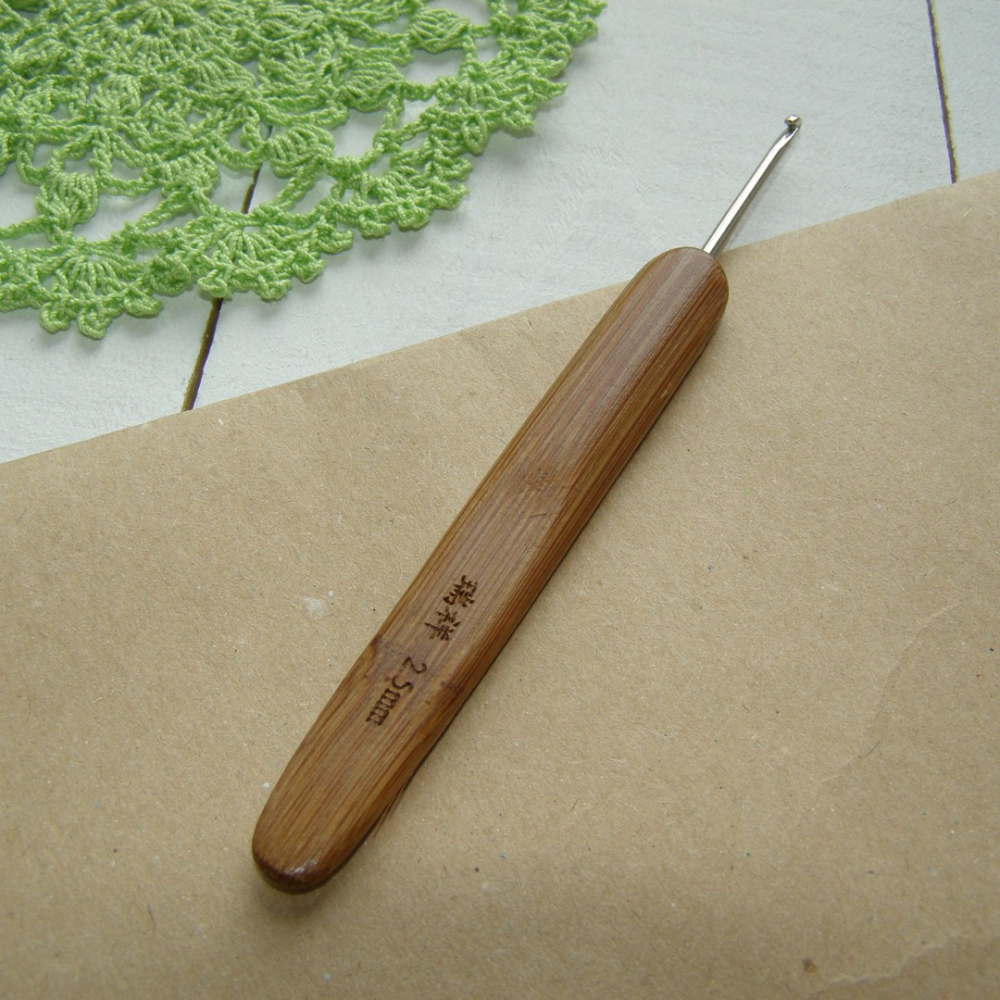 Гачок з бамбуковою ручкою, стальний, 2,5мм