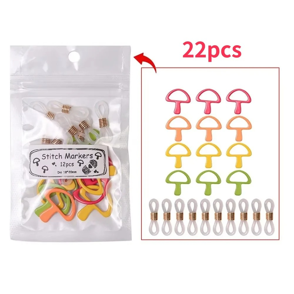 Набір маркерів з стоперами для спиць "Грибочки", різнокольорові, 22шт
