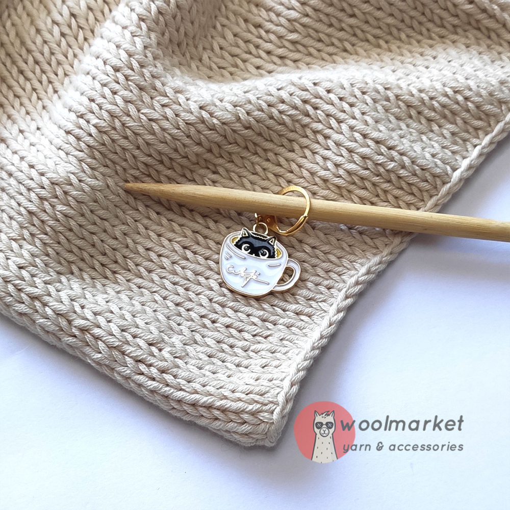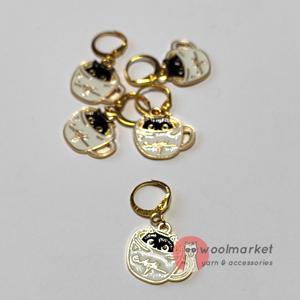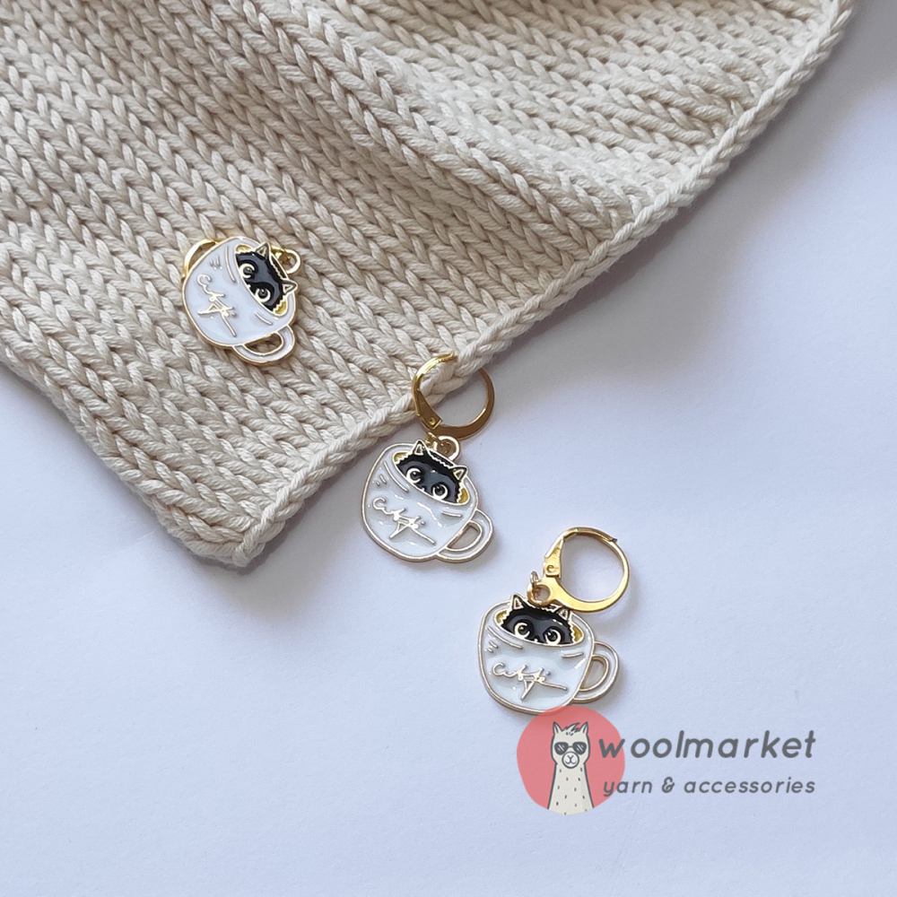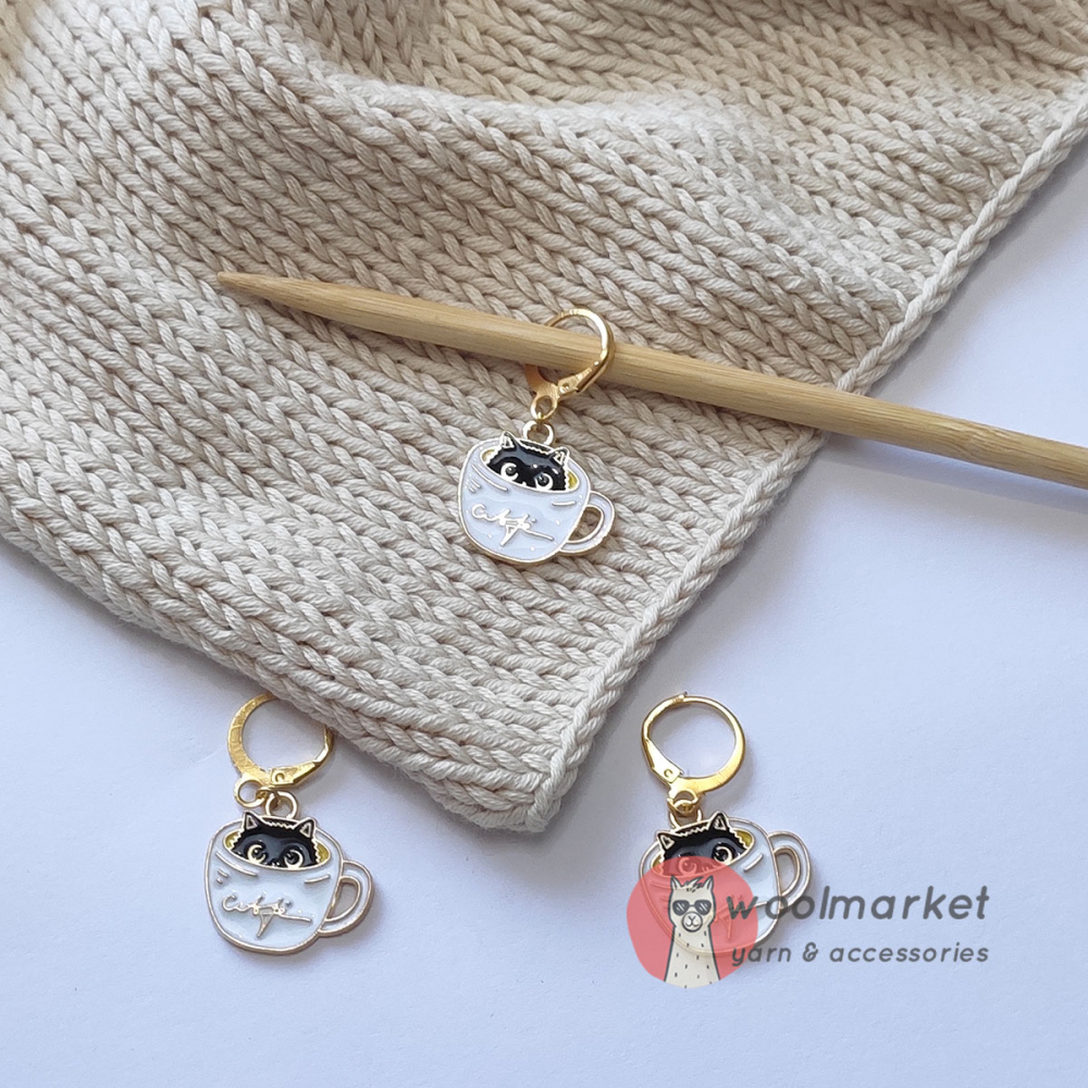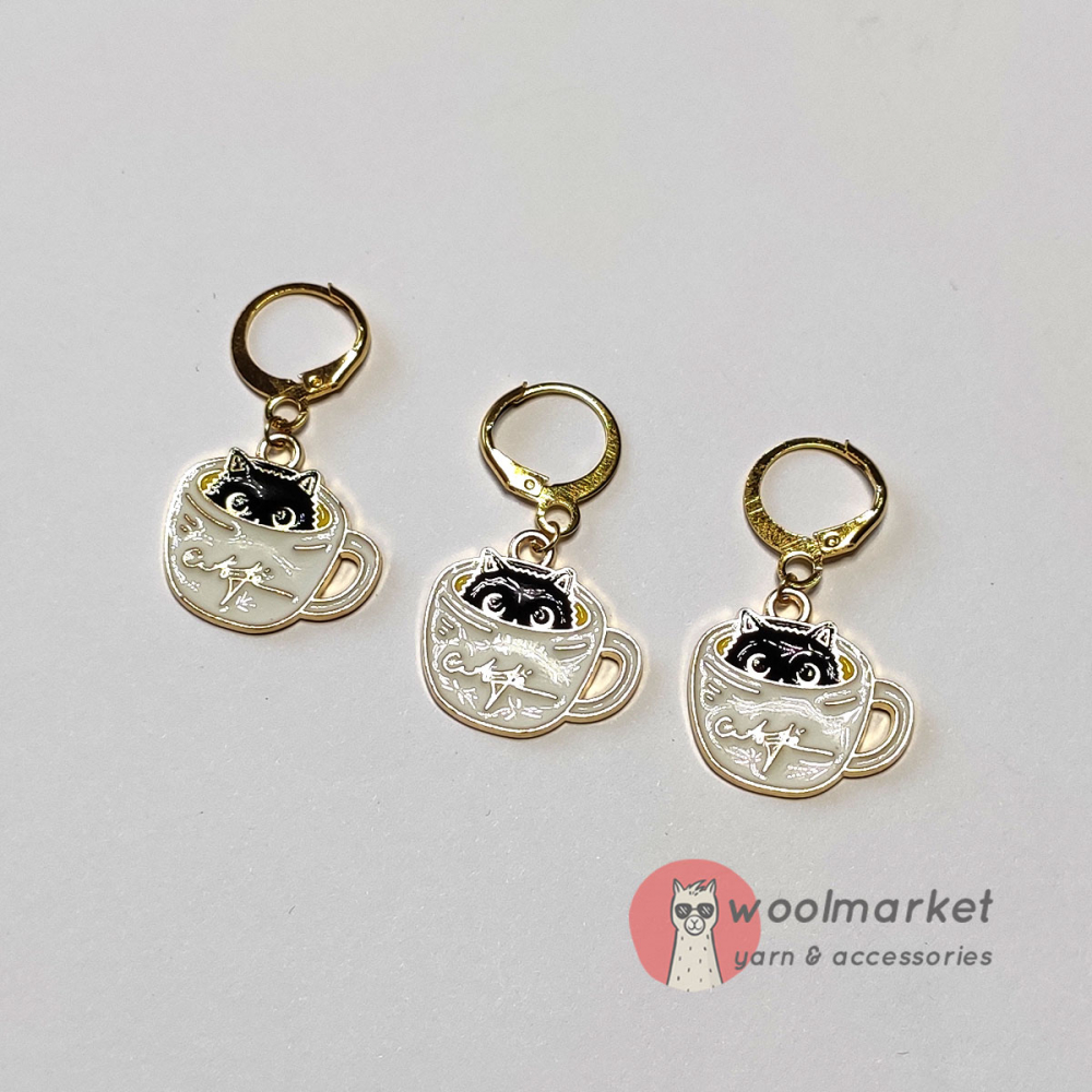 Маркери "Теплі Коти" - роз'ємні в'язальні маркери з котиком в горнятку кави, призначені для в'язання спицями і гачком.