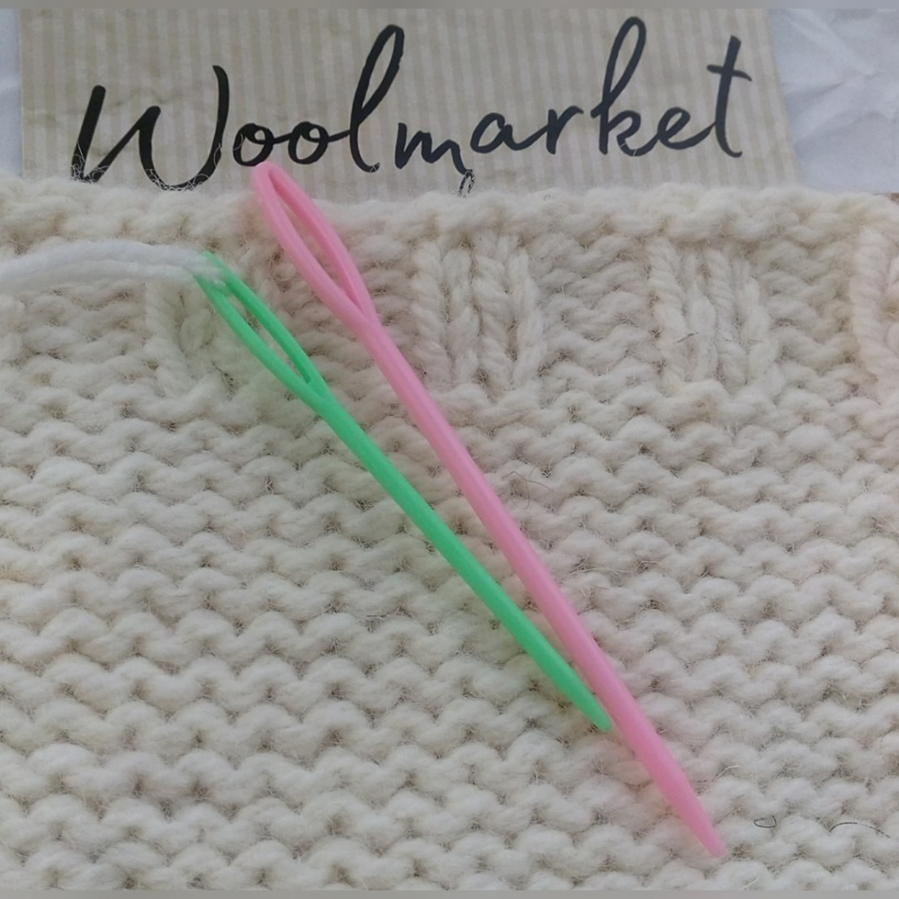 Зручні пластикові голки для пряжі і зшивання в'язаних виробів. Гнучкі з великими вушками, вони не розірвуть в'язане полотно, трішки заокруглений кінчик проходить точно між петельками.