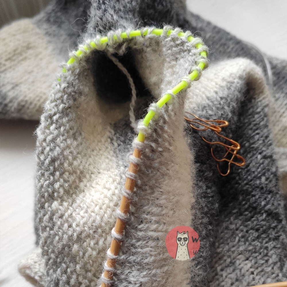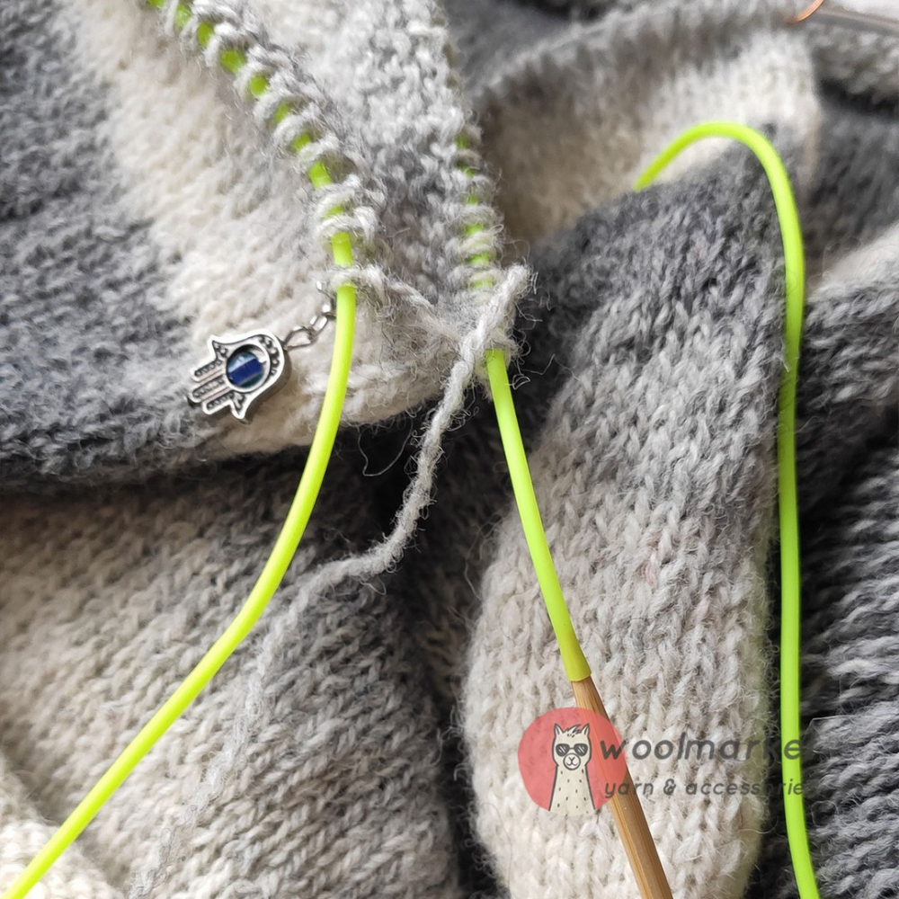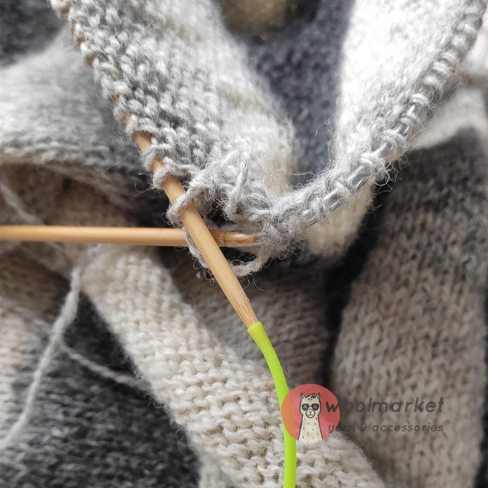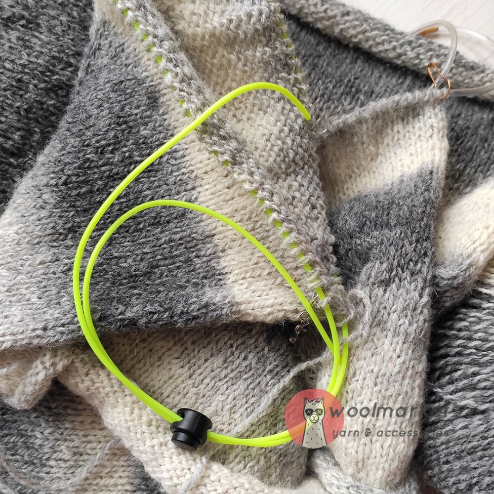 Тримайте петлі на місці, а проекти в’язання – організованими! Представляємо наш шнур-тримач для петель. Цей універсальний тримач підходять для спиць від 2 до 5 мм (за умови гострих кінчиків, в іншому випадку до 4 мм) і дозволяє легко переносити петлі з спиць на кабель і назад. Ідеально підходить для зберігання петель рукавів або тіла під час примірки одягу або відпочинку від в'язання.