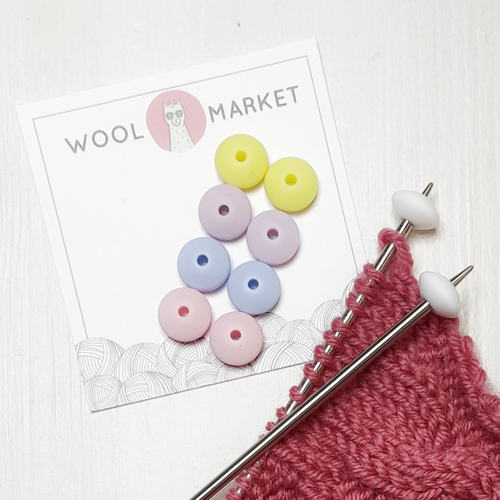 Стопери для шкарпеткових спиць, набір 2 (св. рожевий, св. блакитний, св. бузковий, св. жовтий) - практичні і яскраві силіконові наконечники для фіксації шкарпеткових спиць під час в'язання.