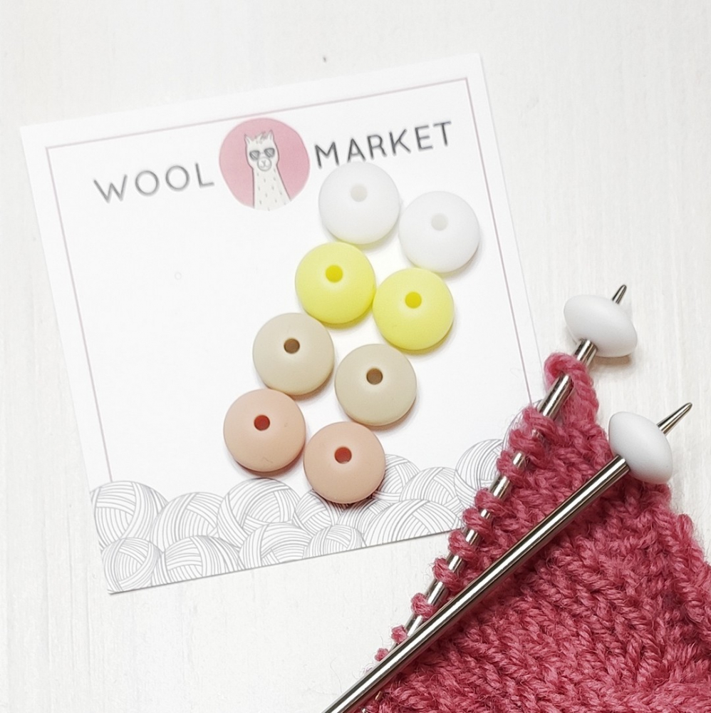 Стопери для шкарпеткових спиць, набір 7 (відтінки бежевого, світло жовтий, білий) - практичні і яскраві силіконові наконечники для фіксації шкарпеткових спиць під час в'язання.