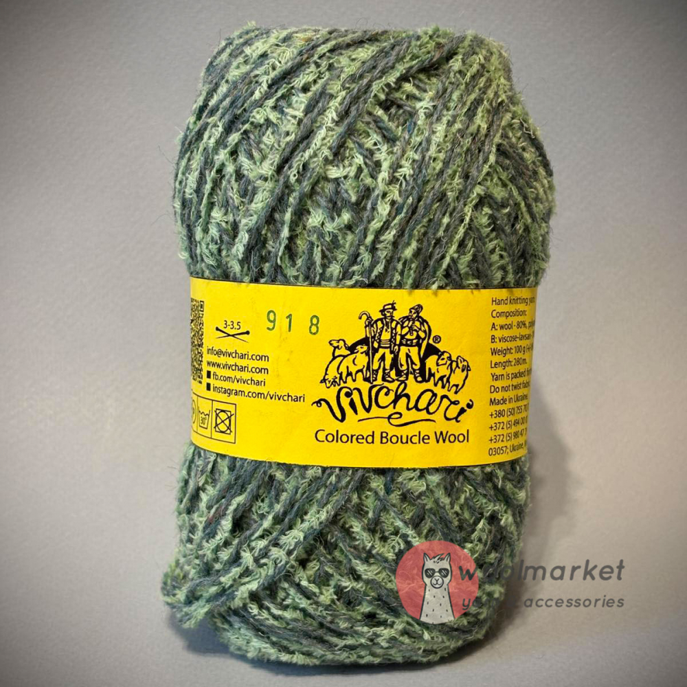 Vivchari Colored Boucle Wool салатовий букле, темно зелений 918